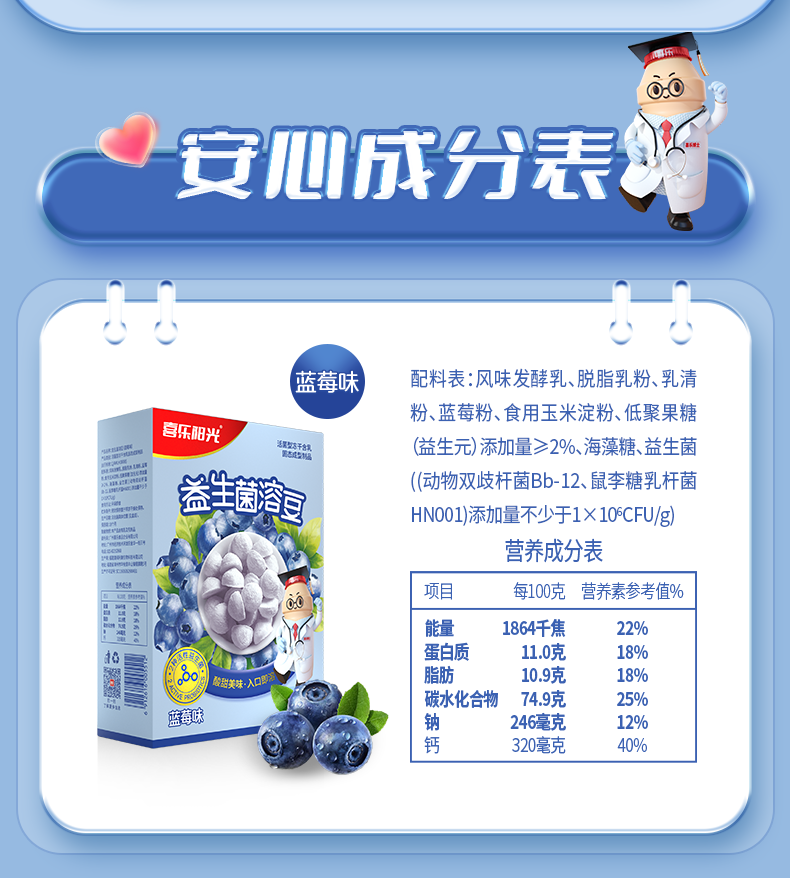添加益生菌、益生元:活性益生菌含量1*10^6