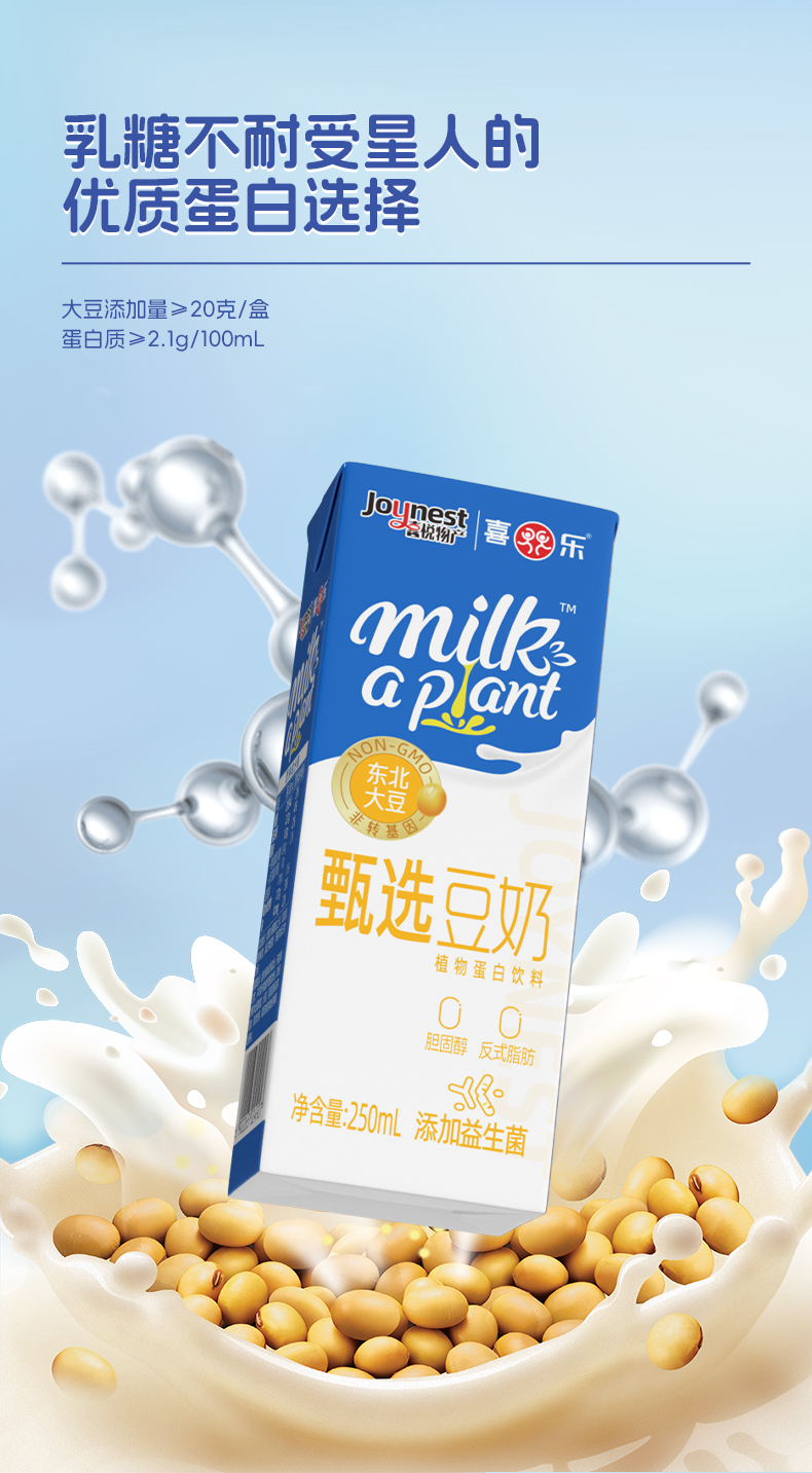 乳糖不耐受星人的優質蛋白選擇:大豆添加量≥20克/盒、蛋白質≥2.1g/100mL。